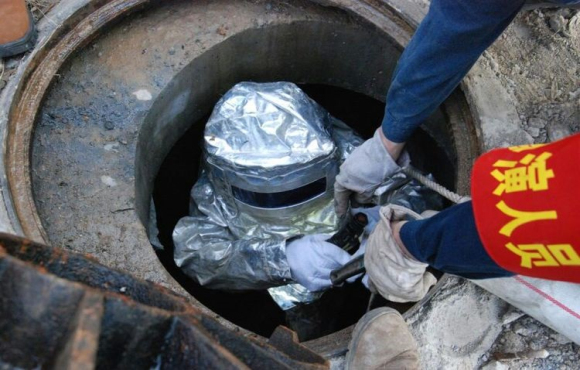 檢修人員穿著隔熱服準(zhǔn)備下井檢修