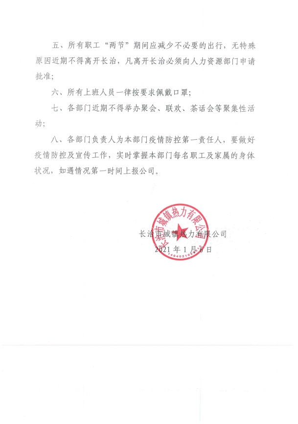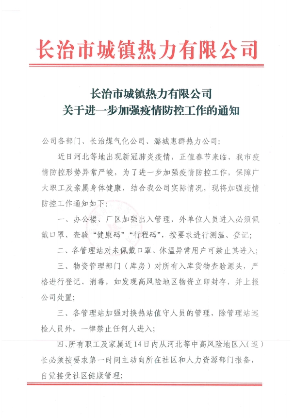 長治市城鎮(zhèn)熱力有限公司關(guān)于進一步加強疫情防控工作的通知